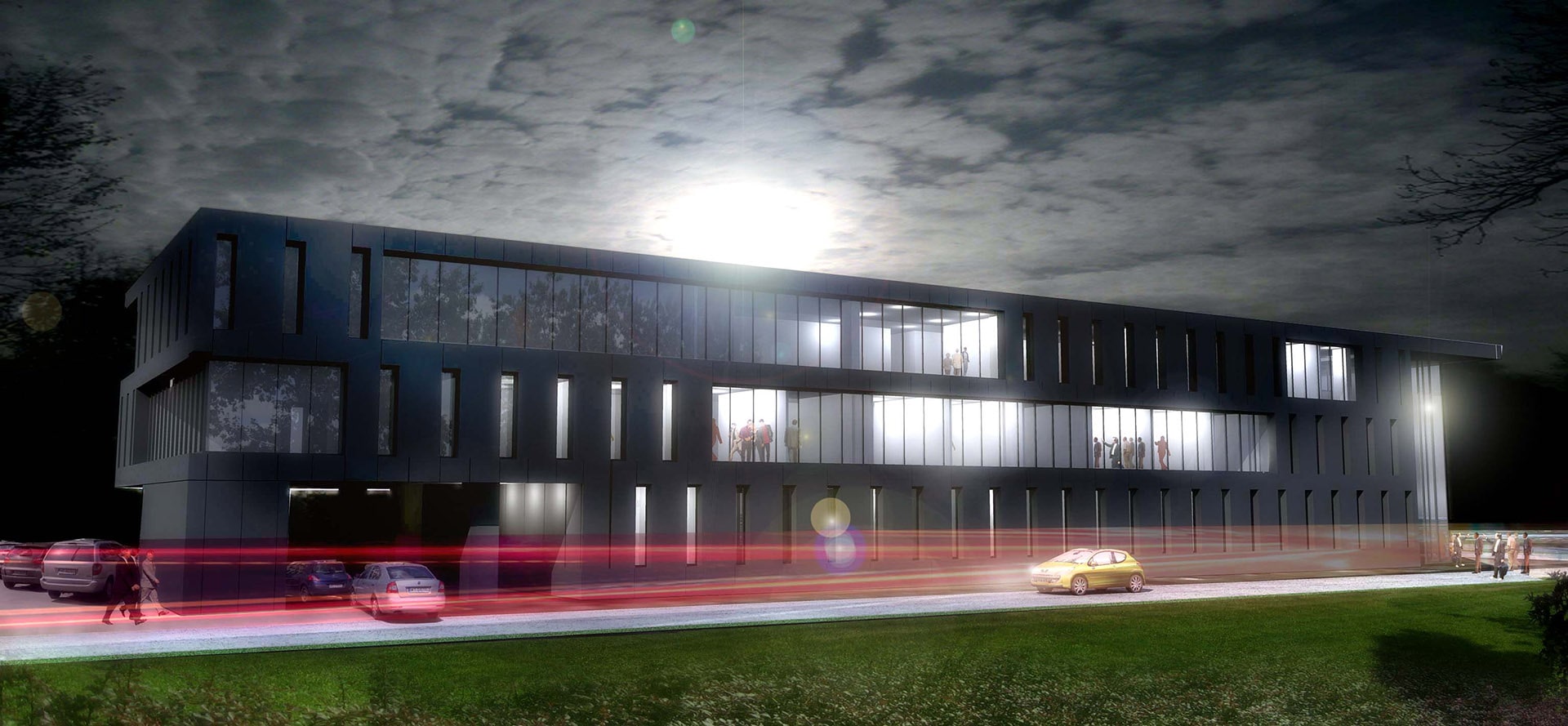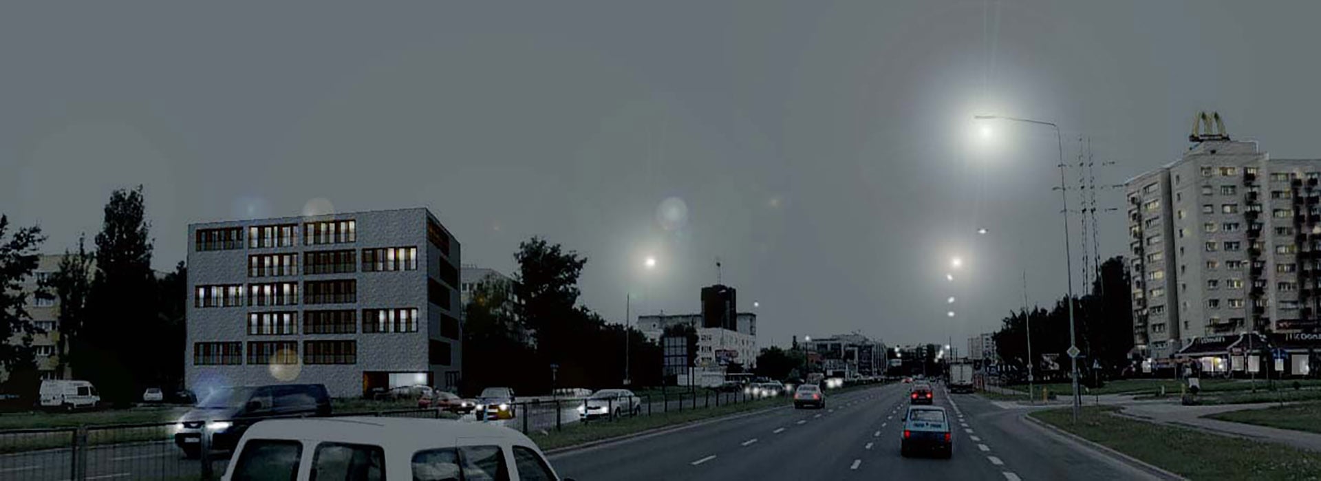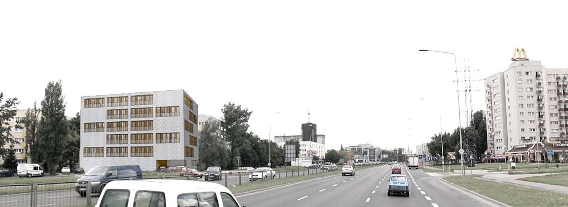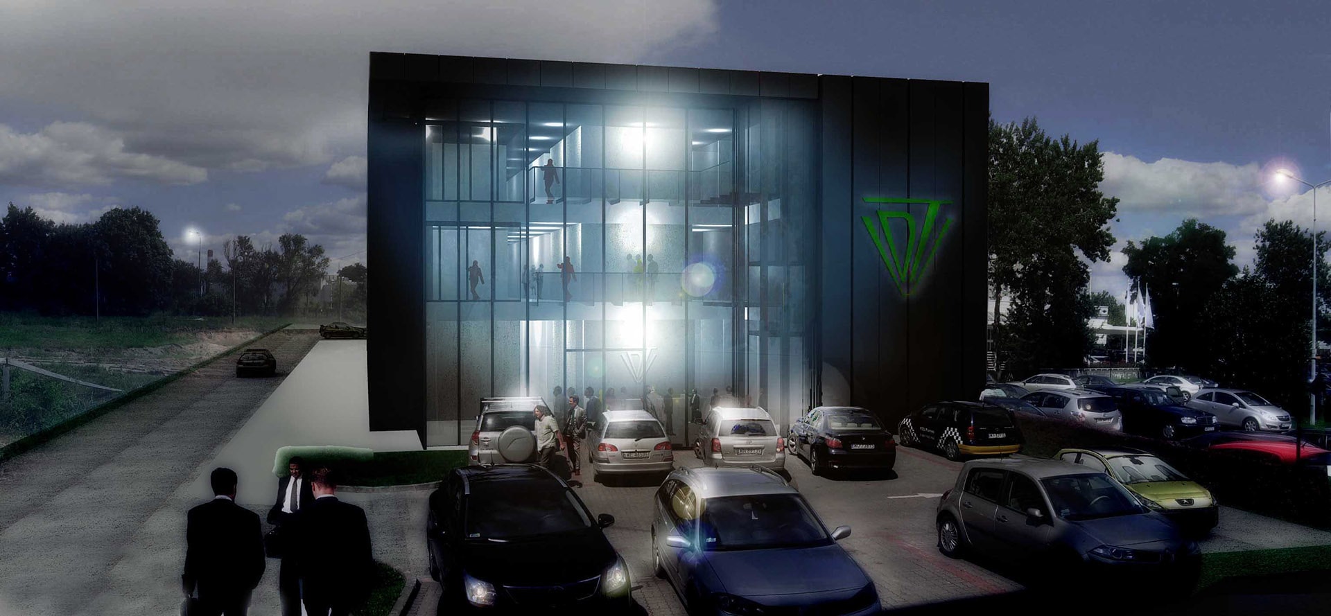 Projekt koncepcyjny budynku biurowego oraz budynku kontroli i diagnostyki pojazdów dla oddziału Urzędu Dozoru Technicznego w Warszawie.